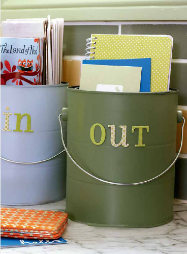 对小桶进行粉刷,然后用剪贴纸制作分类标签,贴在小桶上。